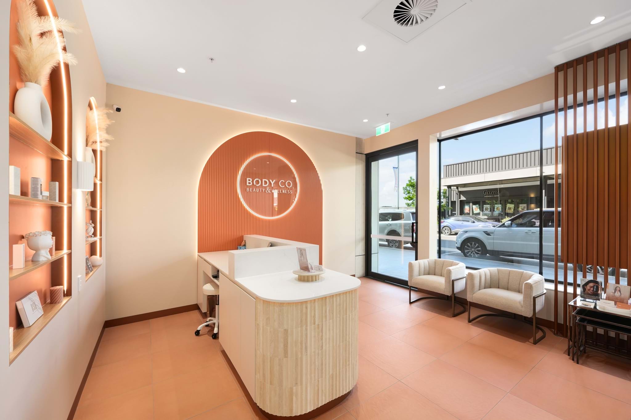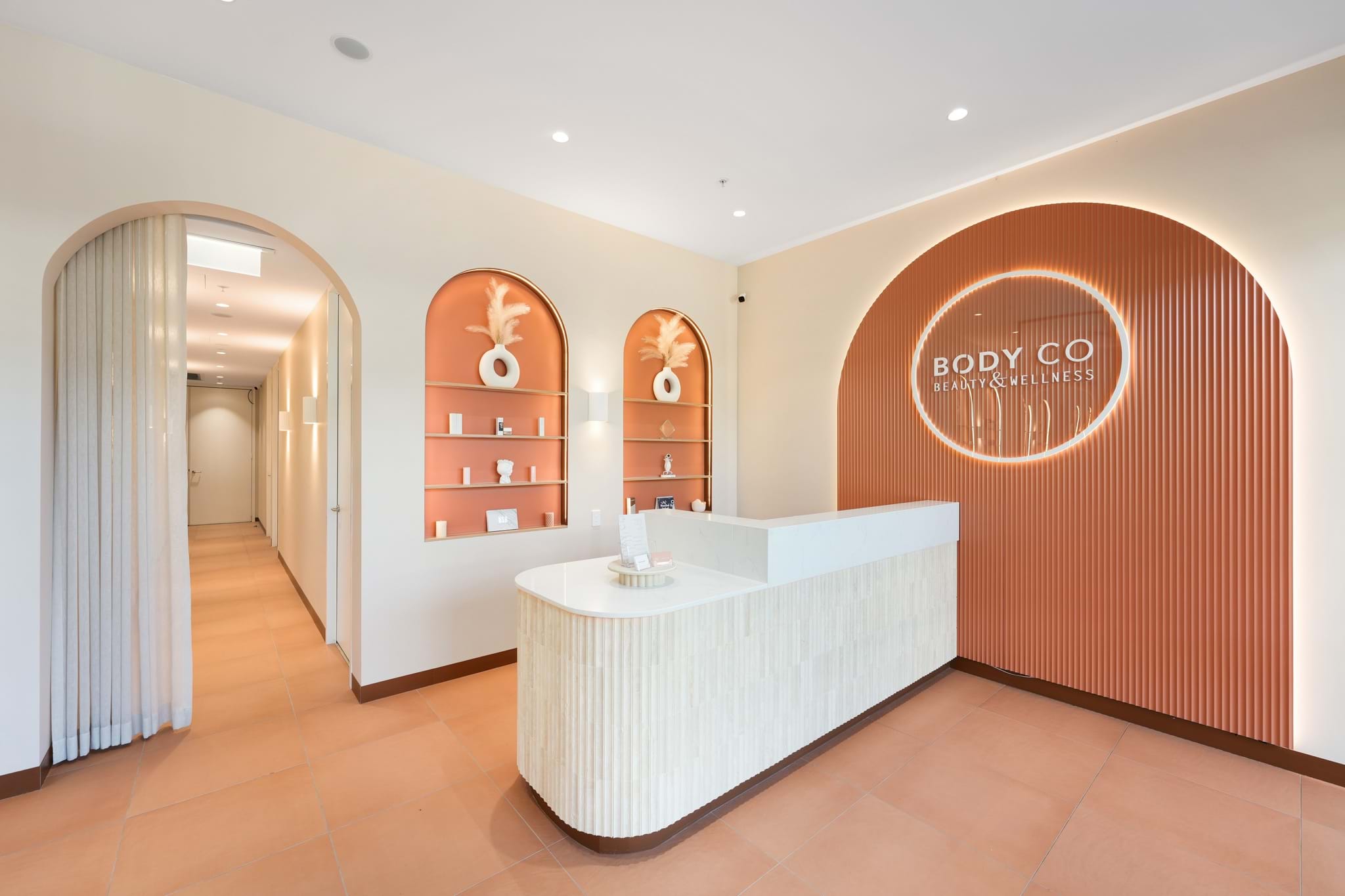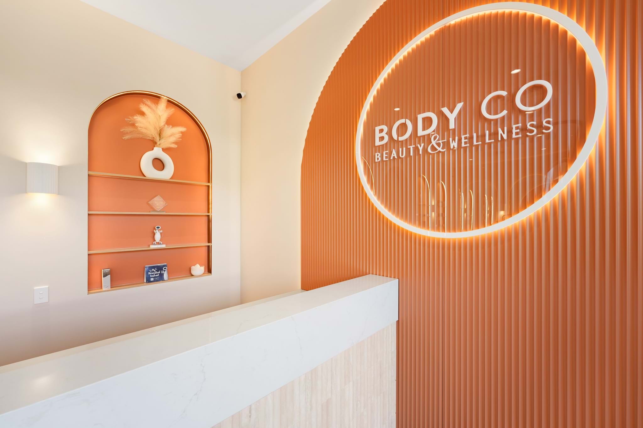 For Body Co, a wellness-focused brand dedicated to holistic beauty and self-care, the design the brief called for a standout feature wall that would elevate their branding. The goal was to create a visual focal point that would immediately immerse clients in the brand’s ethos of calm and comfort.