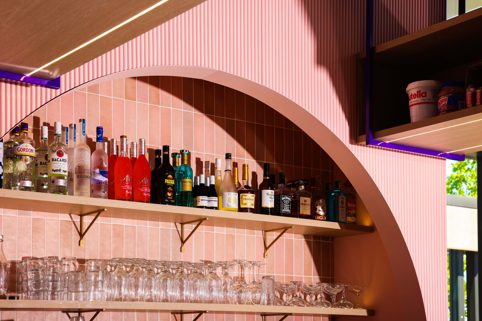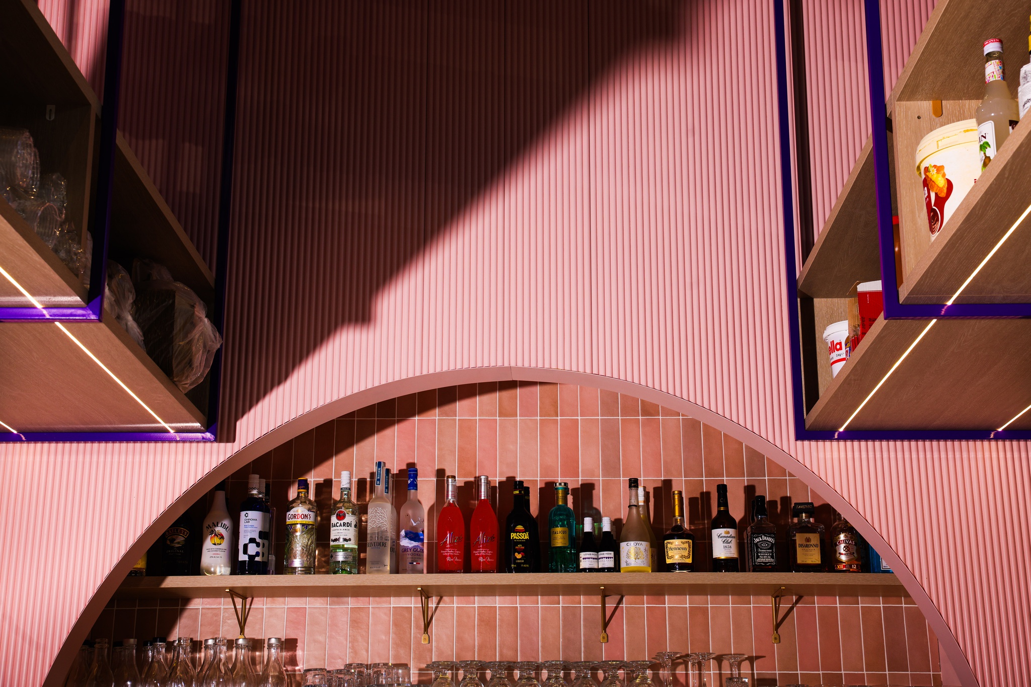 For this project, we supplied Ribbed panels that were custom-shaped into inverted arch cut-outs. These forms were strategically positioned to frame the back of the bar, creating a dramatic focal point that immediately draws the eye. The arches extend seamlessly from floor to ceiling, giving the illusion of increased height and dimension, while the ribbed texture adds depth and shadow play under changing lighting conditions.